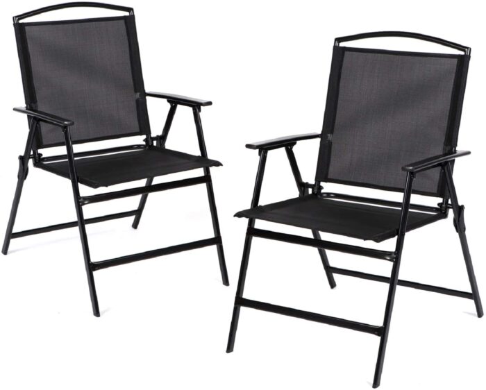 Bylring Patio Folding Sling Dining Chairs Set of 2 Outdoor Indoor Backrest Portable Household Seats for Outside Lawn Garden Patio Pool Yard with Armrest(Black)