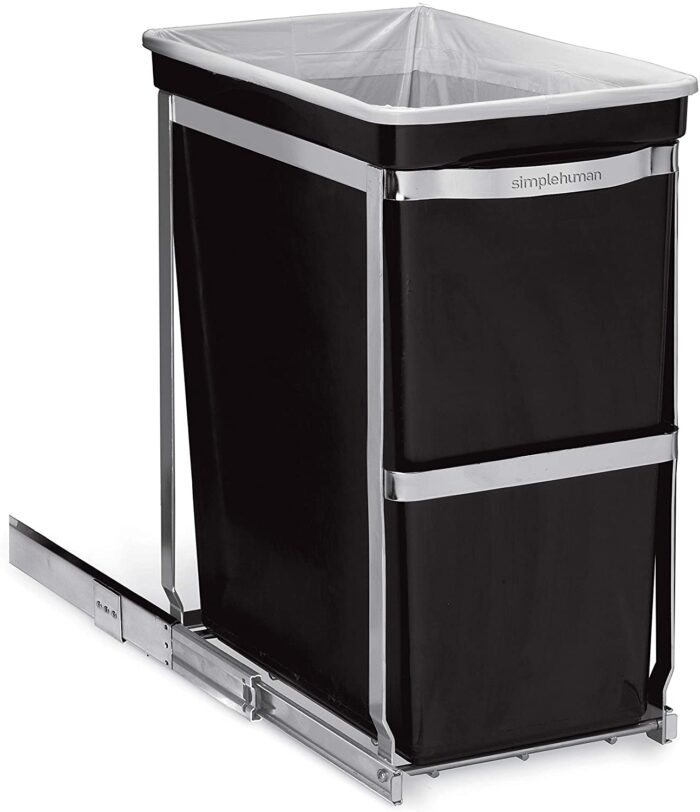 - INTEGRATED STEEL HANDLE – Grab the strong, sturdy handle to pull the can out of the cabinet quickly.