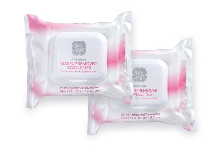 Simply Soft Premium Skin Cleansing and Makeup Remover Wipes, Pre-Moistened Towelettes, Fragrance-Free, Hypoallergenic, pH Balanced, 7.4″ x 7.4″ Wipes, 25 ct. (2 Flip-top Packs)